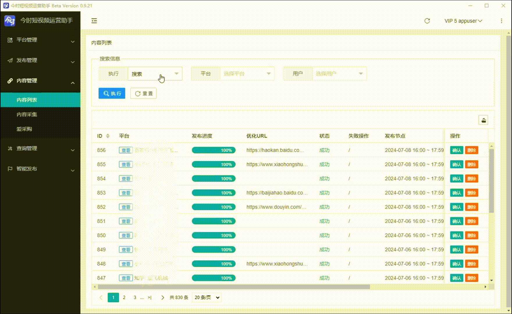 원클릭 그림, 동영상을 틱톡, 콰이서우, 위챗 대중번호, 동영상번호, 샤오홍서, 삐리삐리 등 20+ 자체 미디어 플랫폼에 배포하는 것을 지원하며, 서로 다른 계정에서 서로 다른 작품을 발표하는 것을 지원하며, 대량 조작이 가능하며, 1분 원클릭 편집 발표, 백스테이지 자동 발표, 내용 발표 효율과 운영 관리 효율을 제고하는 것을 쉽게 실현할 수 있다